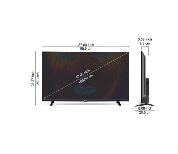 - 43” Full HD Edgeless Display: Crisp 1920×1080 resolution with vibrant colors and wide viewing angles on a sleek frameless design.