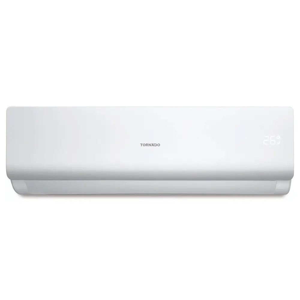 The Tornado TH-C24BHU 24,000 BTU split AC provides powerful cooling with T3 compressor and R410A refrigerant. Features include Gold-Fin anti-corrosive coating, Auto-Restart, Sleep Mode, 4-Way Swing, Self-Clean, and I-Feel Mode. Ideal for small to medium-sized spaces.